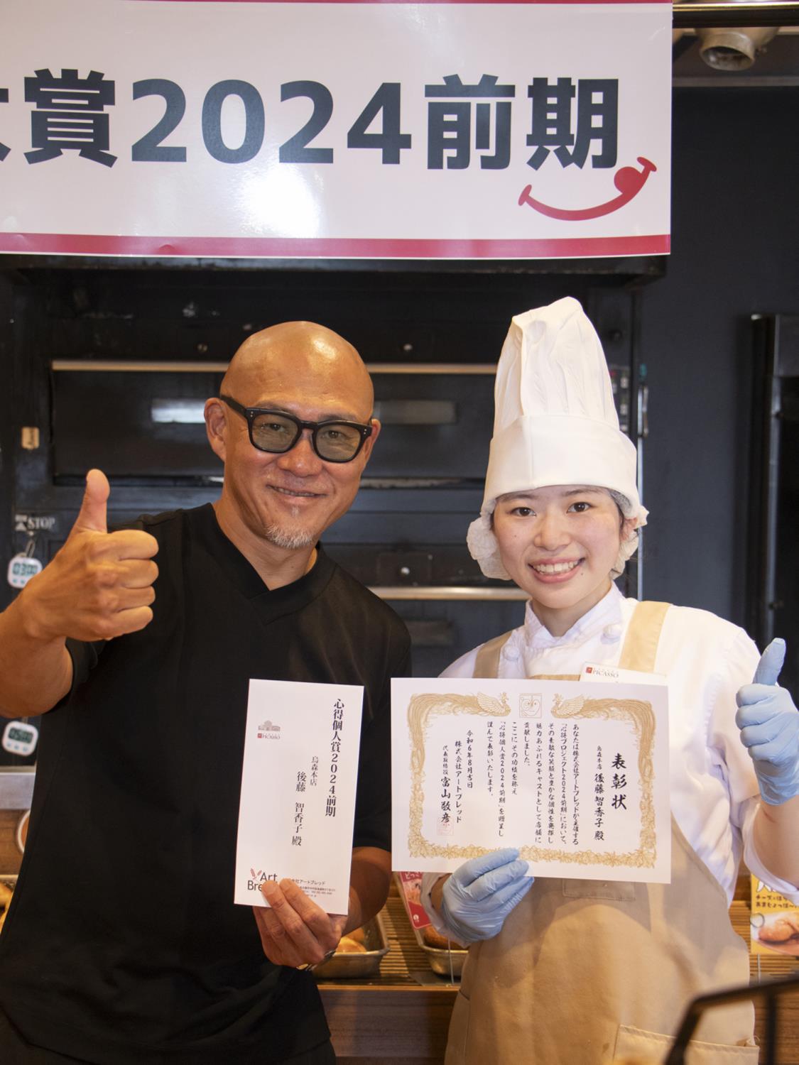 ¡¡¥Ñ¥ó¤ÎÀ½Â¤ÈÎÇä¤ò¹Ô¤¦¥Ù¡¼¥«¥ê¡¼¥Ô¥«¥½¡Ê°¦Ãθ©Ì¾¸Å²°»Ô¡¢ÉÙ»³·Éɧ¼ÒĹ¡Ë¤Ï¡¢Æ±¼Ò¤¬±¿±Ä¤¹¤ëÁ´£¶Å¹Êޤ˽ê°¤¹¤ë½¾¶È°÷¤òÂоݤˤ·¤¿¡Ö¿´ÆÀɾ²ÁÀ©Å١פÎɽ¾´¼°¤ò¡¢½é¤á¤Æ¼Â»Ü¤·¤¿¡£É¾²Á¤Î·ë²Ì¡¢£±¥Á¡¼¥à¤È£µ¿Í¤Î¥­¥ã¥¹¥È¡Ê½¾¶È°÷¡Ë¤¬¡Ö¿´ÆÀÂç¾Þ¡×¤ËÁª¤Ð¤ì¡¢¼ø¾Þ¼°¤¬¹Ô¤ï¤ì¤¿¡£