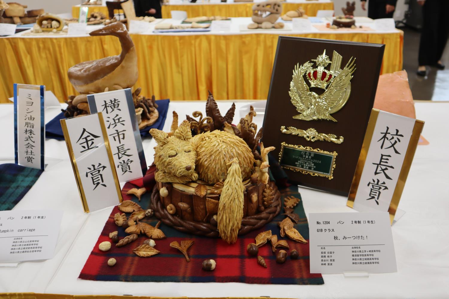 | | 広瀬道校長(中央)と学園祭実行委員ら | | | | パンを買い求める来場者が列をなした「ブーランジェリー クロリィ」 | | | | 学生らが製造販売した「チョコクロワッサン」(右)など | | | | 校長賞、金賞などの三賞を受賞した「秋、みーつけた!」と題した作品 | | 国際フード製菓専門学校(広瀬道校長)は神奈川県横浜市の同校で11月3日、「美味しさ彩る笑顔咲く」をテーマに学園祭「フードフェスティバル2024」を開催した。 晴天の下、午前10時の開場前から長蛇の列ができ、校内で行われたレストランや物販、学生らの作品展示などを楽しむ来場者で終日賑わった。 パンカフェ「ブルーミング カフェ」では、サヴァランを使用した「キャロット&ツナサンド」やベーグルを使用した「アップル&練乳クリーム」などとドリンクのセットを税込550円で提供。 「今年は製菓製パン科だけでなく、調理師と製菓衛生師の資格取得を目指すシェフパティシエ科が加わったことによって、人参の千切りやベーコンの炒め物など調理が必要なメニューの展開ができました。作業の様子を見ていると、丁寧に作業ができる製菓製パン科と、段取りを考える力のあるシェフパティシエ科が、互いに力を発揮できており、学生たちにとって良い学びの機会となったと思います」(宇野大悟パン教授) 「ブーランジェリー クロリィ」ではパン製造販売を行った。「チョコクロワッサン」(税込170円)や「アスパラベーコンエピ」(税込180円)、「クリームパン」(税込170円)など13品目が並んだ。 「おすすめは『クロワッサン』と『アスパラベーコンエピ』ですね。ベーコンエピは今回、ベーコンと相性抜群のアスパラを入れて、彩り良く仕上げています。コストが上がっているので価格が若干上がっていますが、満足感のある商品になっていると思います」(北村修パン教授) 学生らの作品展示では、優秀な作品に各賞が与えられた。飾りパンの作品部門では、長塚日菜子さん、郄橋咲子さん、長谷川栞菜さん、林崎菜波さんが製作した「秋、みーつけた!」と題した作品が校長賞と金賞、横浜市長賞の三賞を受賞した。